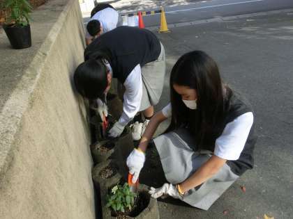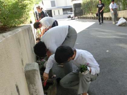 昨日の美化保健委員会に続き、今日は5・6組が正門前の花壇の整備をしてくれました。