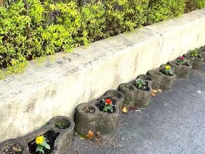 安祥寺中学校を訪れた方を、正門前で綺麗な花たちが迎えてくれます。