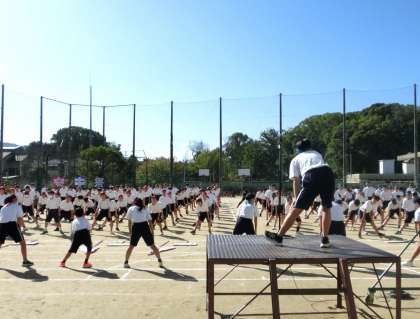 体育委員長による選手宣誓の後、体育副委員長のリードで準備運動もしっかり行い、競技への準備は万全です。