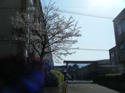 校門前の桜の木もいよいよ九分咲きといったところでしょうか?