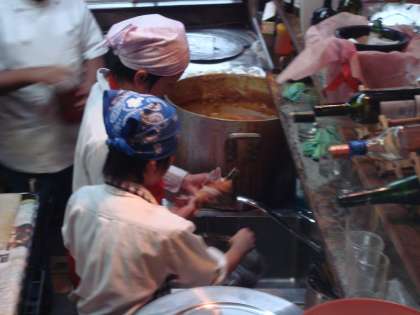 1枚目:厨房にて洗い物(横にはカレーのなべ、その奥には立派なタンドリーが・・・)