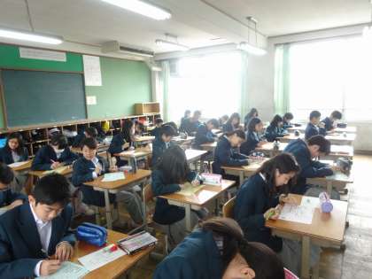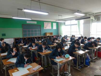 1年生は学活の時間に自己紹介カードを記入したり、中学生になっての決意作文を書いていました。今日から学校での昼食もスタートし、少しずつペースをつかんでくれているようです。