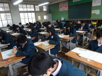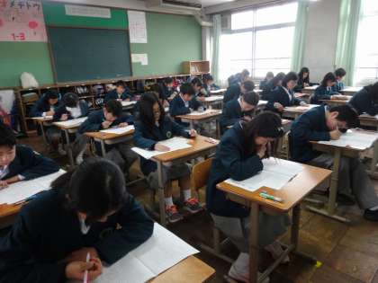 テストの内容は小学校の復習ですが、中学校で初めて受けるテストに真剣な表情で挑んでいました。