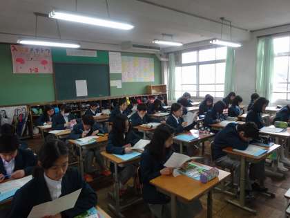 教科学習もスタートしました。数学ではさっそく「方程式」の学習、英語では担当の先生の紹介や学習方法の説明、社会ではグループ学習の形態を取り入れ相手の意見を聴くという活動が行われていました。