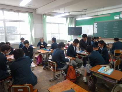 3年生の英語の授業ではALTのバーガー先生と比較表現の学習をしていました。