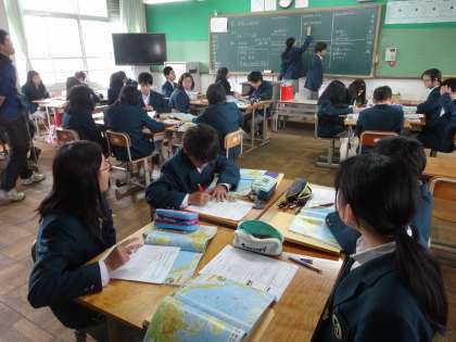 1年生の社会科地理的分野では世界の国について学習をしています。