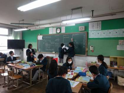 今日は世界地図での位置と国旗から「キリバスってどんな国?」かをグループで話し合い、「漁業が盛ん」「独自の文化がある」「自然が豊か」「高い山はない」「暑い」というイメージを理由とともに発表していました。