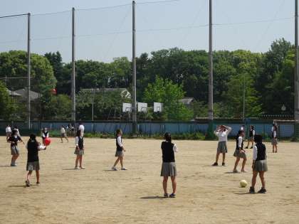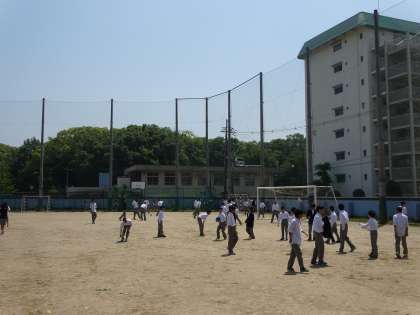 台風が過ぎて、よい天気です。まだ気温もさほど高くなく清々しい陽気で、昼休みには大勢の生徒たちがグランドでボール遊びをしていました。