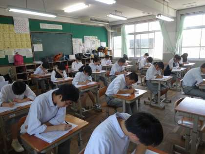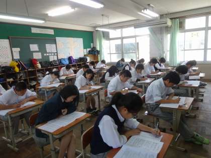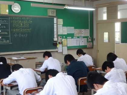 定期テスト1の初日がスタートしました。問題用紙・解答用紙が配布され、試験開始とともに真剣に問題に向き合っています。がんばりを結果につなげましょう。