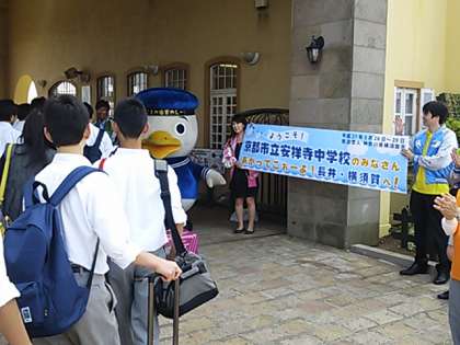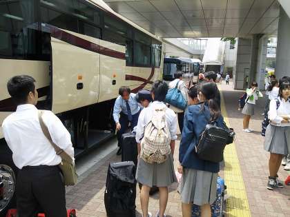 修学旅行団は順調に行程を進行中です。新横浜駅からバスに分乗した一行は、先ほど、ソレイユの丘に到着しました。これから昼食をとり、「入村式」を行う予定です。本日1泊お世話になる民泊先の各家庭の方々と顔合わせを行います。