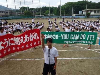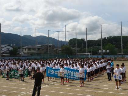 1、2限に学校祭体育の部の予行を行いました。明日の空模様は微妙で、まさにこれからの雲行き次第です。できれば何とかもってくれることを祈ります。中止かどうかの判断は7時頃にホームページならびに校区内の3小学校の正門付近に掲示(←「中止」のみ)にてお知らせします。