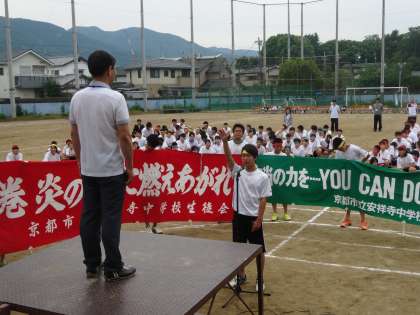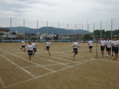 昨年度までは秋に実施していましたが、今年度は様々な学校行事との兼ね合いでこの時期の開催となりました。近畿地方も梅雨入りし、本日も天候が心配される中ですが、体育の部を実施しています。