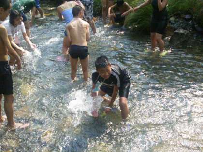 川遊びや飯ごう炊さん、キャンプファイヤーなど自然のもとで楽しく交流の一時を過ごしました。