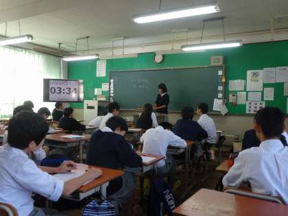 2年生は夏休み明けに国語の授業でビブリオバトルに取り組みました。今日はクラス代表に選ばれた生徒が他のクラスに出向いて発表を行いました。