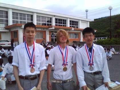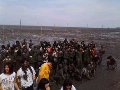 楽しい「ガタリンピック」を終え,全体集合写真。シャワーを浴びた後,表彰式を行ないました。予定より10分遅くバスでホテルに向けて出発しました。