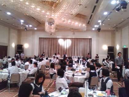 豪華な会場で,生徒たちは朝の食事を取っています。食欲旺盛,今日の力を蓄えてください。
