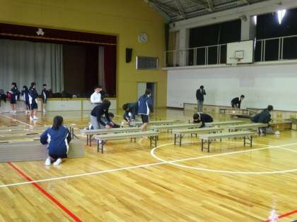 閉会後、卓球部の生徒が片付けをサッと行ってくれ、小学校卒業から1・2年経つたくましい姿を見せてくれました。