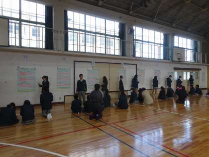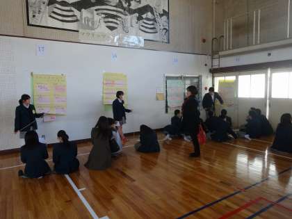 2年生はチャレンジ体験での学びを深めるためにふり返りを行い、ポスターセッション形式で1年生に伝えました。発表を真剣に聞いてくれる1年生の姿が、発表する2年生の成長につながったと思います。参観いただいた保護者の皆様ありがとうございました。
