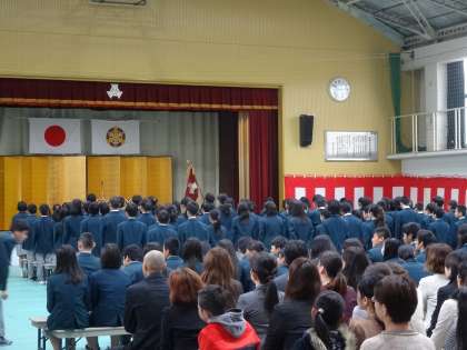 体育館のトタン屋根を雨音が打ちならす中でしたが、平成28年度 第44回入学式を無事挙行することができました。ご来賓ならびに保護者の皆様には荒天の中ご臨席を賜りありがとうございました。3学年、計297名がそろい今年度の教育活動を展開して参ります。これからもご支援ご協力をお願いいたします。