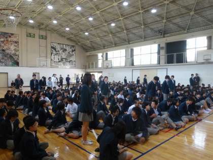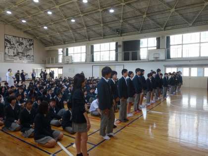 前期の学級委員認証式を行いました。全生徒が生徒会の会員であり、学級委員はクラスの代表として本部役員・各専門委員長とともに生徒会活動を推進していってほしいと思います。生徒一人一人が主役として活動する学校づくりを進めていきましょう。