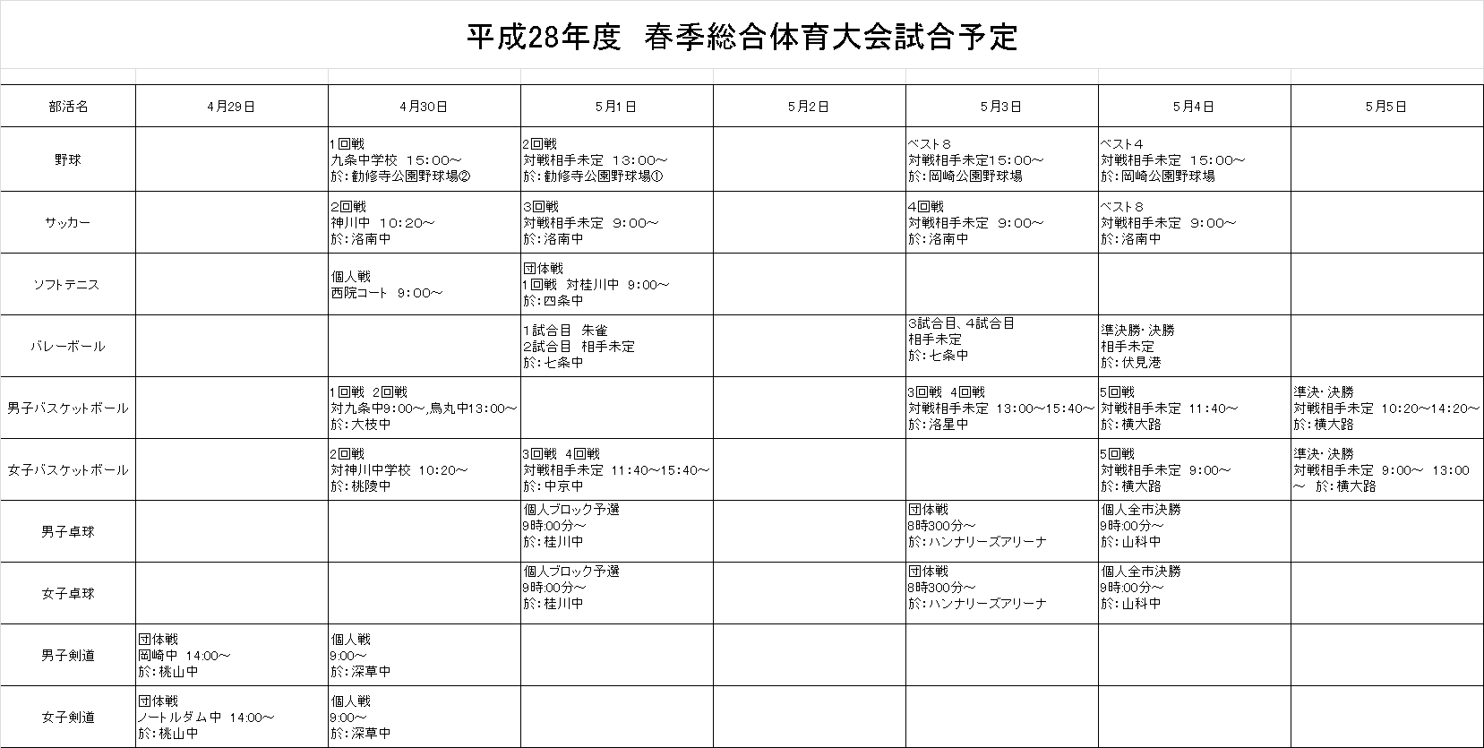 春体 各部の試合日程をアップしました。保護者の皆様も時間の許す限り熱い応援をお願いします。
