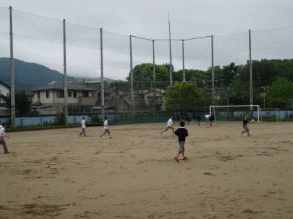 雨がいったんあがった昼休み、水はけが良いグランドではボール遊びに興じる生徒たちの元気な姿が見かけられました。