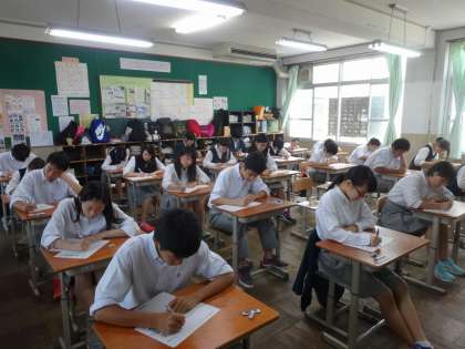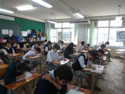 3年生は朝から5時間目まで学習確認プログラムで、ほぼ一日テストに向き合います。