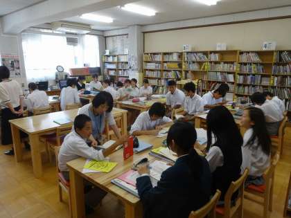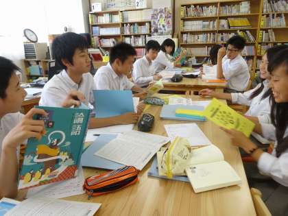 図書館では,「論語」から自分の生活や体験にぴったりくるような言葉を探します。