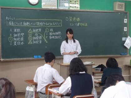 生徒たちにとっては、歳の近いお姉さん的な存在であり、進路選択・決定へと努力している先輩の姿です。授業を盛り立てて応援すると共に、自分の将来にも思いをはせてほしいと思います。