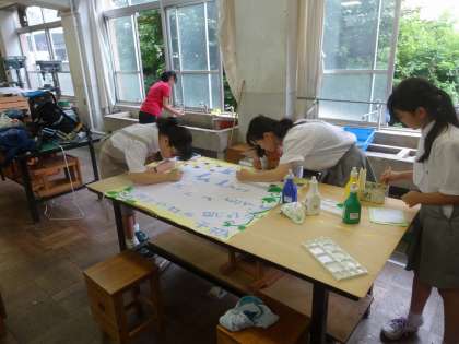 学級旗づくりも大詰めへ <1年>