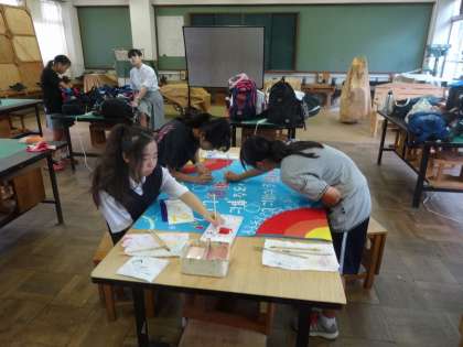 1年生は下地が3色に分かれています。色合いや言葉もクラス毎のカラーがあります。完成が楽しみです。