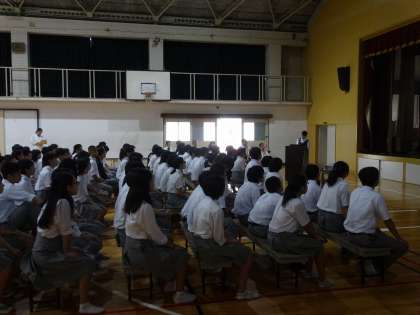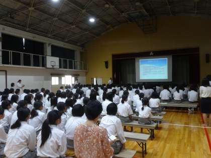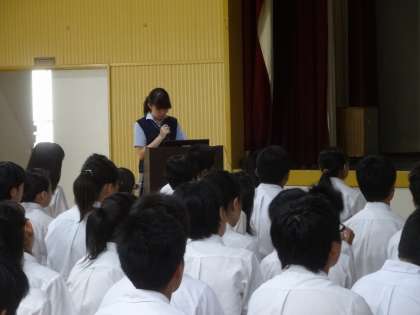 本日1限目に、今春本校を卒業した6名の高校生が、進路について2・3年生に語ってくれる「進路講話」を行いました。