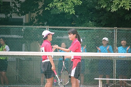 ソフトテニス部の団体戦。日頃の努力の成果を発揮して洛西中学校には3−0,洛北中学校には2−1で勝利をおさめ,ベスト16に進出しました。