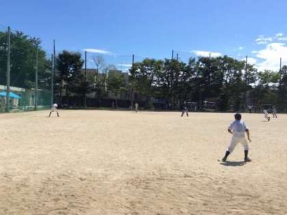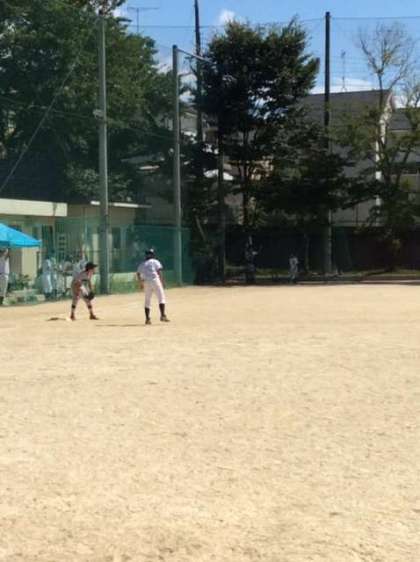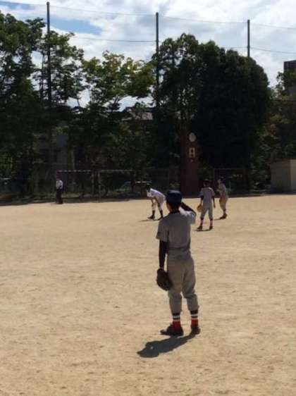 1回裏に2点を奪われましたが,直後に1点を奪い返しました。1−9と引き離された4回に反撃を見せ2点を奪いました。2人の投手を軸に奮闘し,盗塁を阻止する場面も見られました。しかし,エラーがらみでの失点が多く,3−12で初戦を落としました。(醍醐中学校グラウンドにて)