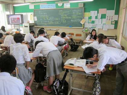 3年1組の理科「環境宣言をつくろう」〜地球環境を未来へ引き継ぎ,生命の連続性を保つためにできること について考え,班で協議しています。