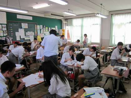 3年4組の社会科「法の支配」「権力の分立」についてペアワークで意見交流をしています。