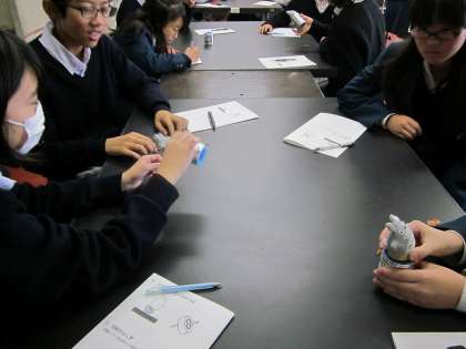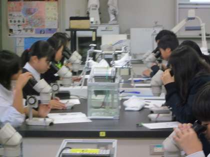 午後から,1年生は科学センターでの学習。1組は緑色岩,2組はメダカ,3組はコマ。それぞれに実験を伴った学習でした。