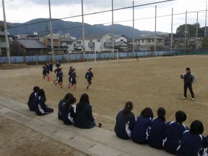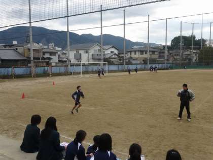 3年生の女子は保健体育の授業で持久走を学習しています。走る前のアップ、走り終わった後に脈を計る等の自己管理も学習の一部となっています。