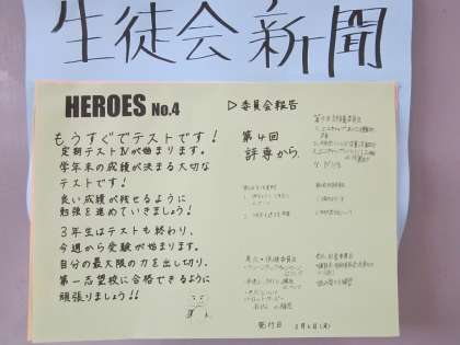 生徒会新聞が,評議・専門委員会の日に発行されています。