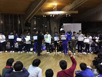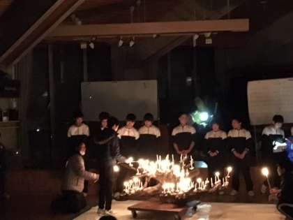 夜の交流会では出し物やゲーム、キャンドルファイヤーなどを楽しみました。ビンゴゲームでは2人とも早くに上がって20位以内に入り、賞品を手に入れることができました。