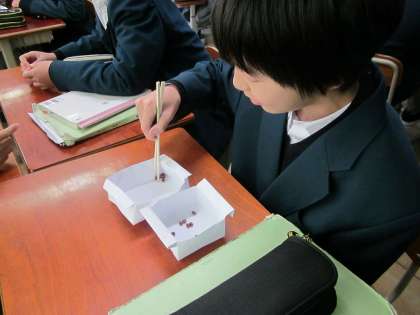 箸を使い,10秒間でいくつの小豆を移せるでしょうか?