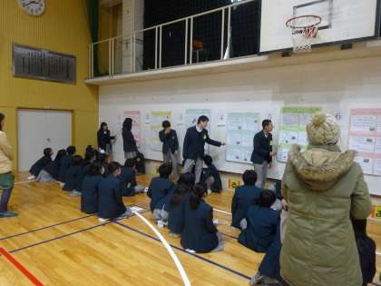 2年生は学習発表会として、チャレンジ体験の報告会を行いました。事業所ごとにポスターを準備し、4交替で報告をしました。聞き役の1年生にとっては次年度へのイメージをもつことができました。