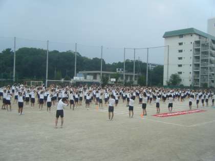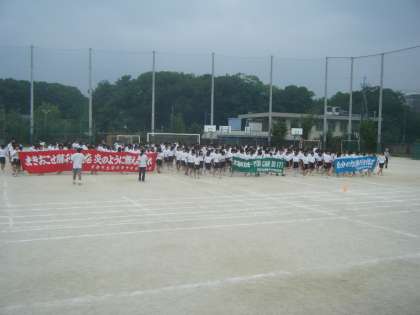 本日1・2限、全校生徒が参加して体育大会の予行練習が行われました。開始当初と終了間際に小雨に見舞われましたが、開会式、閉会式の練習、個人種目の内容確認、学年別団体競技の入退場や競技練習が行われました。