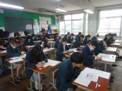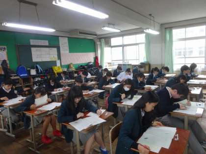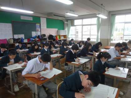 今日は日本中の中3生が国語AB、数学ABと4つのテストを受検します。5時間目は生徒質問紙へのアンケート回答です。
