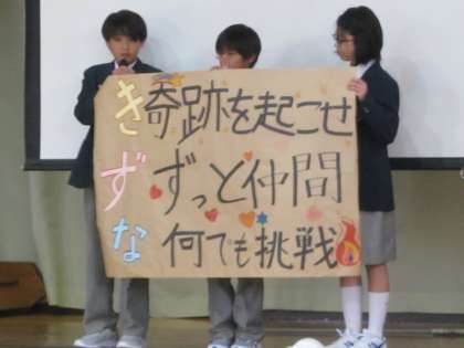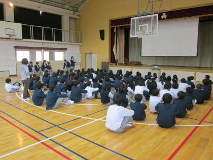 学年目標の発表に続いて,5月23日の校外学習についての説明がなされました。校外学習のスローガンを確認して集会を終えました。各学級で校外学習に向けた準備を進めていきます。