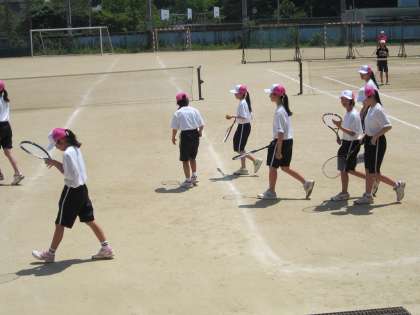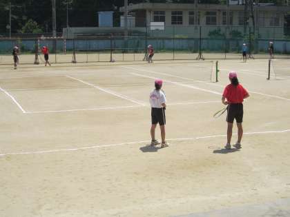 午後のグラウンドはソフトテニス部が活動しています。