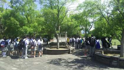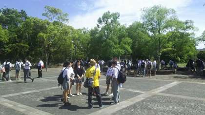 平和学習は 平和公園からスタートして さるくガイドに導かれてポイントを巡りながら学習します。