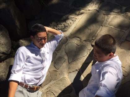 二枚目は市内各所にある「ハート石」の一つを挟んでポーズをとってくれています。