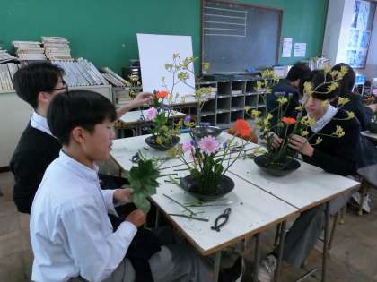 同じ花材でも、一人一人違う個性あふれる作品に仕上がっていきます。