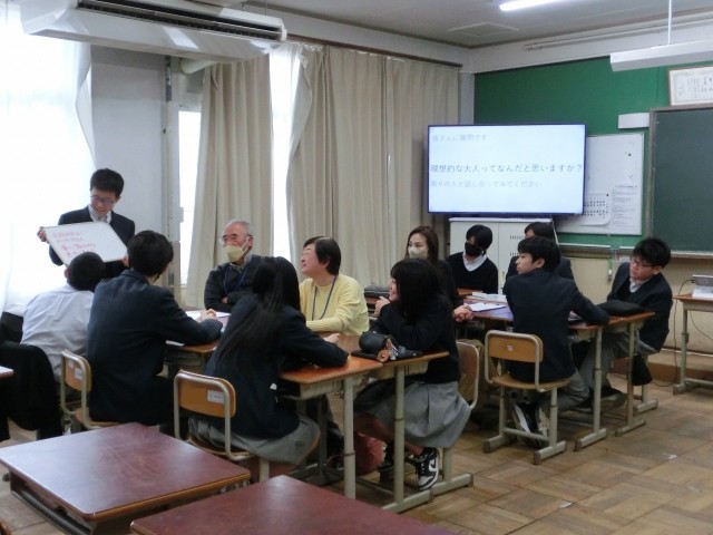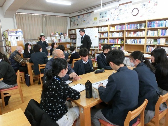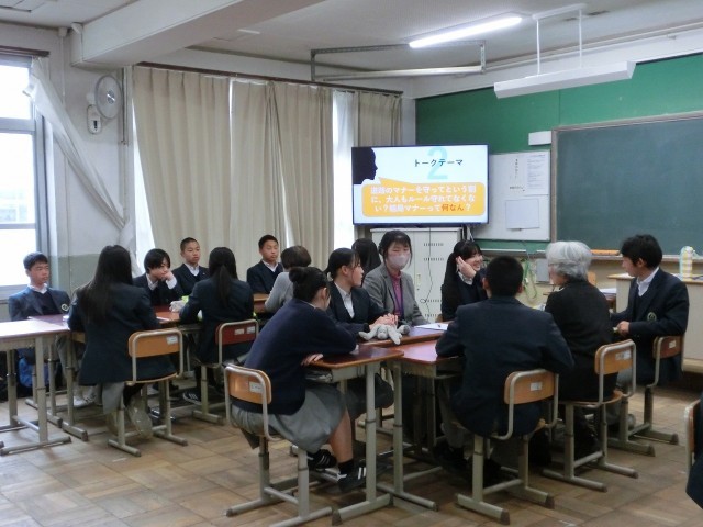 1月27日(火)午後、中学生と地域の人が語らう「ふれあいトーク安祥寺」を開催しました。中学2年生のグループに大人の方が入り、色々なテーマについて話をしました。